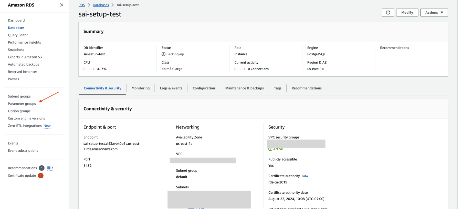 1. Примените новую группу параметров к вашей базе данных RDS Postgres
